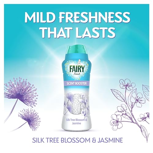 Discover Fairy Non Bio Silk Tree Blossom & Jasmine in-wash scent boosters for a mild freshness that lasts and lasts. Fairy Non Bio in-wash scent boosters are infused with the delicate scent of Silk Tree Blossom & Jasmine which delivers a truly authentic scent on fabrics without being overpowering. You can personalize the scent intensity by choosing the quantity of beads you want to use, and it works with all types of fabrics. Pour the in-wash scent booster beads directly into the empty drum before your laundry.