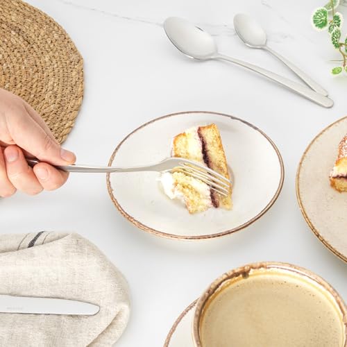 18/10 STAINLESS STEEL: Made from 18/10 stainless steel, this cutlery set has been carefully polished to a mirror finish. Although it is dishwasher safe, we recommend you handwash in warm soapy water to maintain the finish and dry thoroughly.