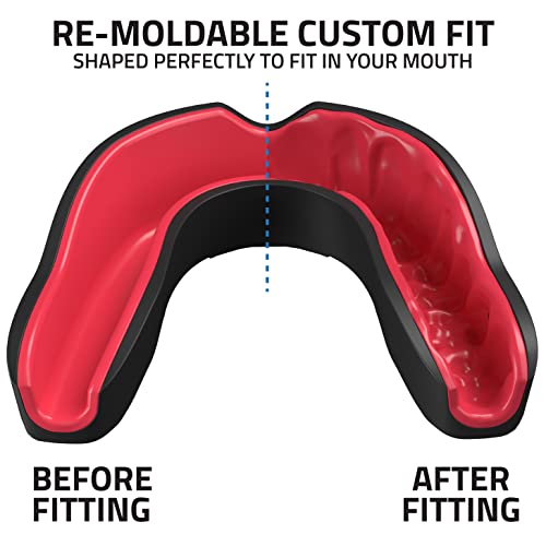 ✅ PERFECT FIT TO ANY MOUTH SIZE: Our youth/adult MMA mouth guard easily moulds to fit any tooth shape and mouth size. It is made of precision-fitting material that provides optimal retention and comfort and is ideal for athletes of all ages, men, women, and kids.