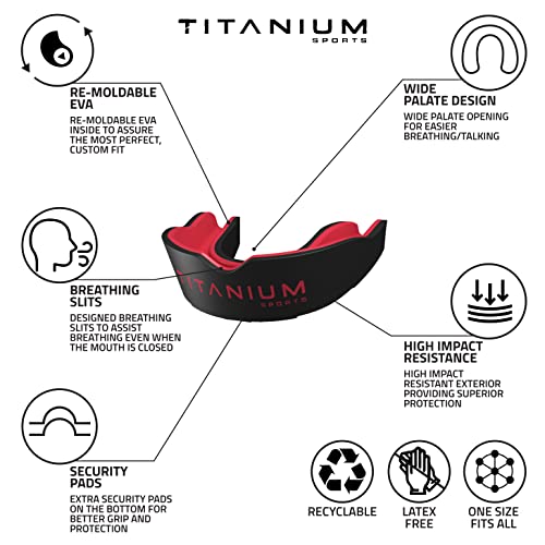 Titanium Sports Premium Mouth Guard – Slim Fit Sports Mouth Guard with Case – Gum Shield for Jaw Protection in Contact Sports – Durable Boxing, MMA, Judo, Karate, Rugby, Hockey, Football Mouthguard