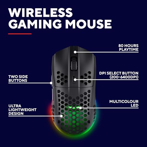 Specification: Trust Gaming GXT 929 Helox Wireless Gaming Mouse, Superlight Wireless Mouse 75g, 80h Battery Life, 2.4 GHz Micro-USB Receiver, Adjustable DPI (800-4800) for Gaming PC Gaming Laptop – Black